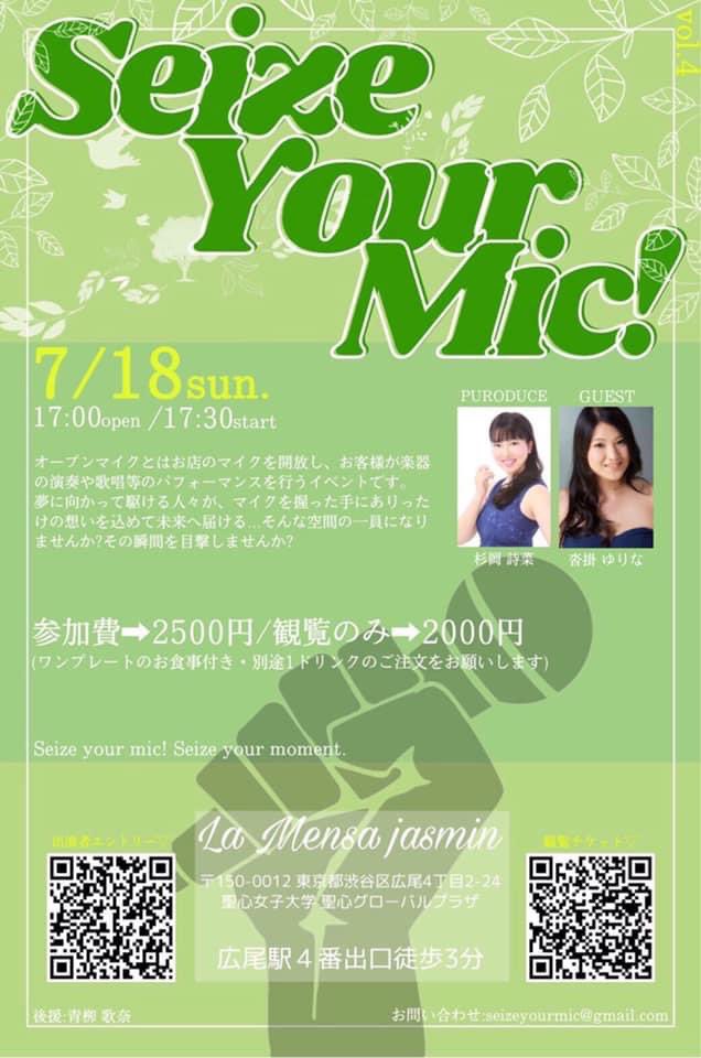 | 7/18(日) 17:30 | Seize Your Mic! vol.4 ![]() | La Mensa Jasmin | 「リトルプリンス」より〈シャイニングスター〉 | 参加: 2,500円 観覧: 1,500円 | https://lit.link/seizeyourmic |